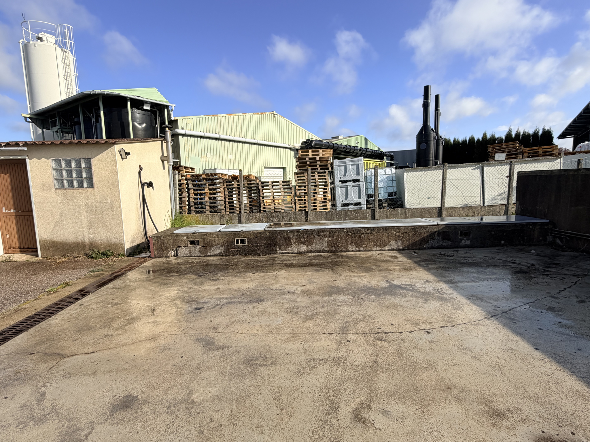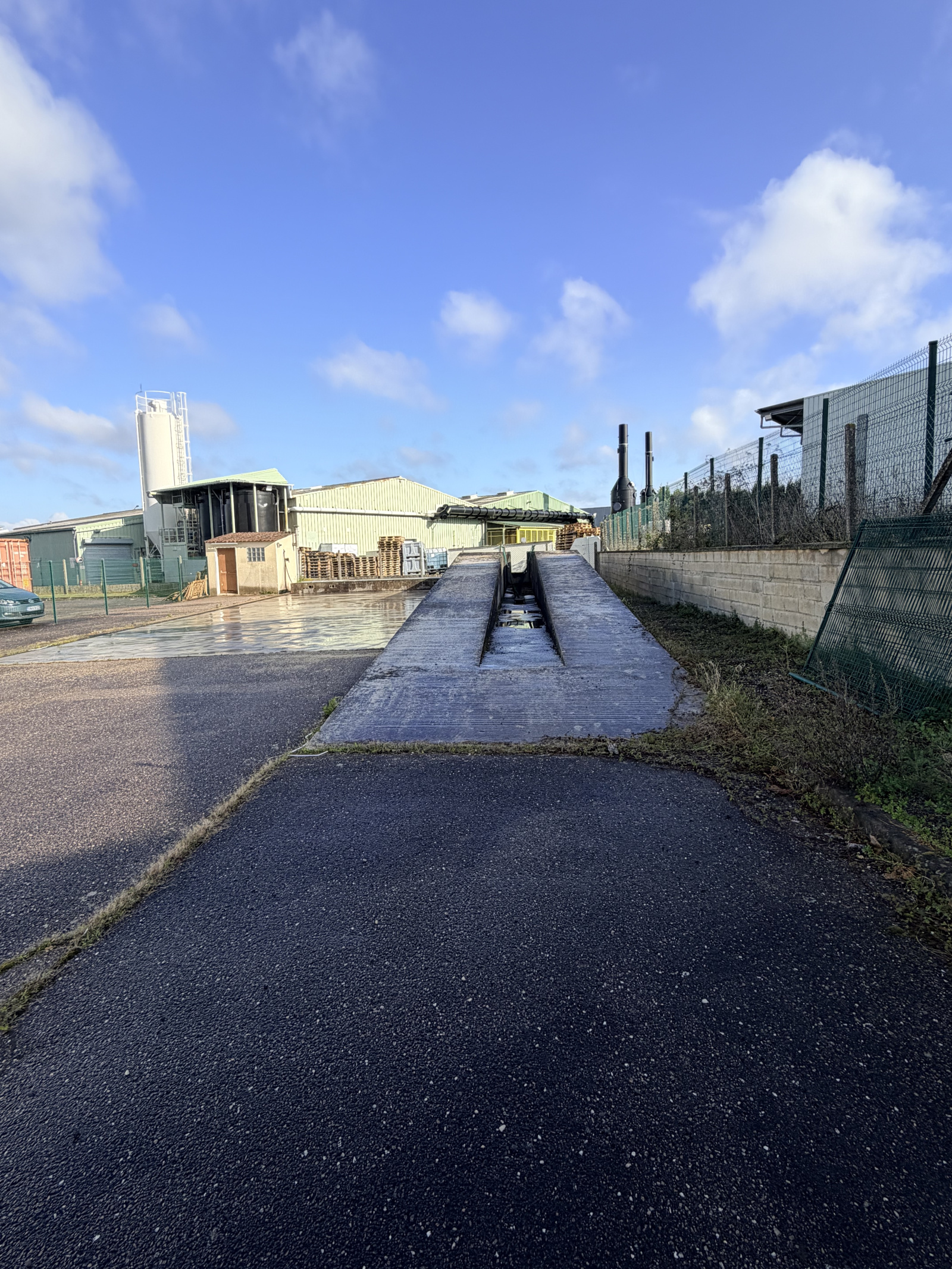 En 2ème rang par la rue, terrain de 600m2 avec une rampe extérieure non couverte permettant d'entretenir des véhicules. Ce terrain a un accès direct via un portail possibilité de louer le terrain contigue avec un accès commun possible de 2500m2.