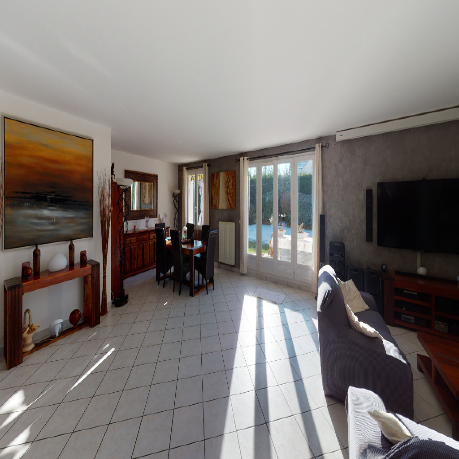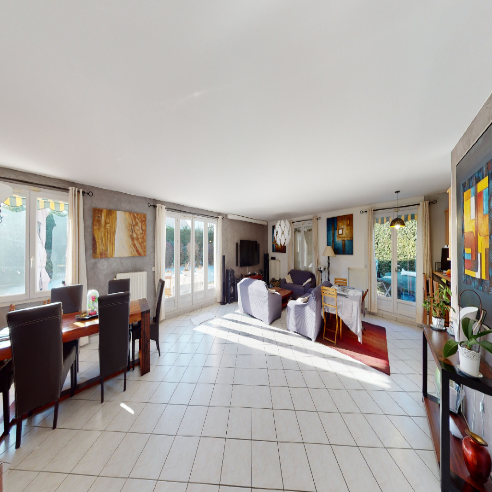 Bussy-Saint-Georges - Quartier recherché - Maison de plain pied avec un hall d'entrée, un séjour- salle à manger très spacieux (59,91m2) donnant sur un jardin exposé plein sud et une cuisine ouverte meublé équipé. L'espace nuit comprend 2 belles chambres, une salle de bain, un WC et une suite parentale avec dressing et salle de bain. Possibilité de faire une autre chambre !!! À l'étage, les combles sont aménagées en bureau. Pour compléter le bien, un Garage double motorisé et deux places de stationnement devant la maison. BIEN RARE ! Un bien vendu par B.A.M. Immobilier.